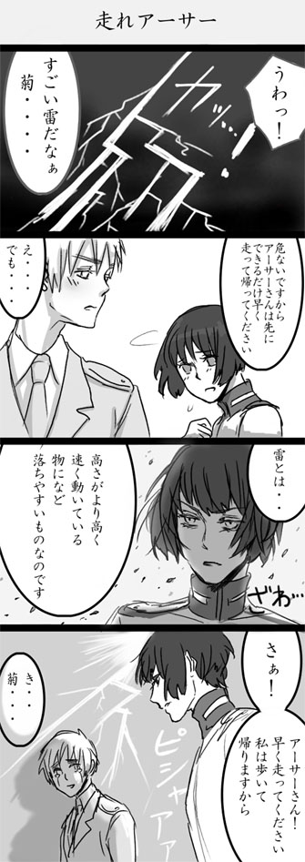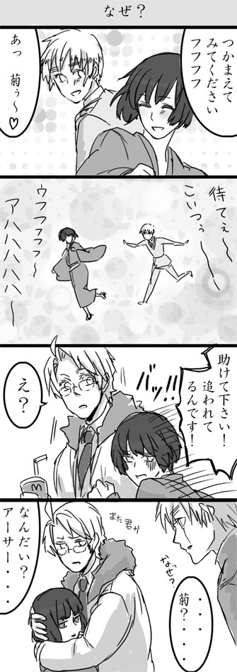 話をがらっと変えまして、つづきにまた貰ったペ/ケパロ漫画とニホロイド漫画をぶっこんでおきます。Kちゃんからメールを頂きまして、独受け書いてくれるなら、協力は惜しまないぜ★と、言われました。・・・無茶をおっしゃるwwwというか、漫画によってアーサーの扱い違いすぎるwww