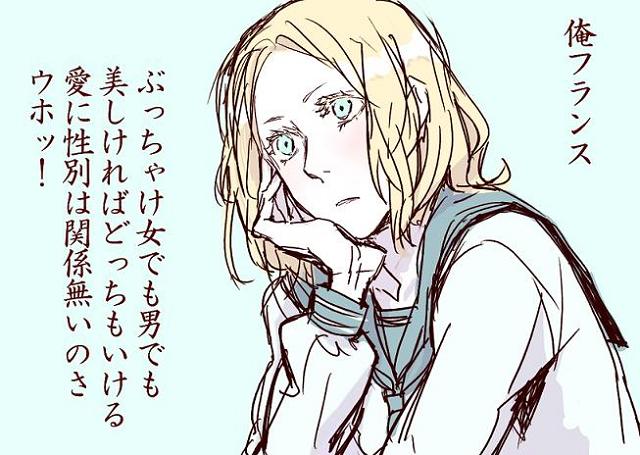 ぎゃあああ可愛いよドイツ可愛いよ、制服着てるのにどうしても高校生に見えない所が可愛いよ!!足長過ぎだよ可愛いよ!!ナチュラルに八頭身あるところが可愛いよ!!胸板に正面から思いっきりタックルしに行くから受け止めてくれよな!ドイツ可愛いよ!